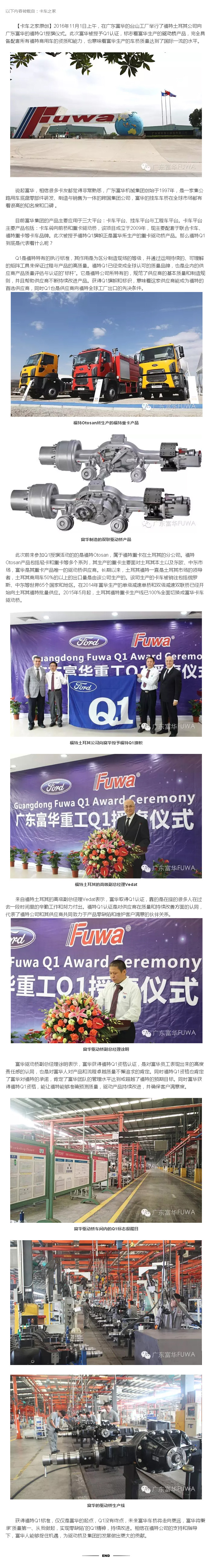 【媒體聚焦】驅(qū)動橋產(chǎn)品受認可 富華榮獲福特Q1認證