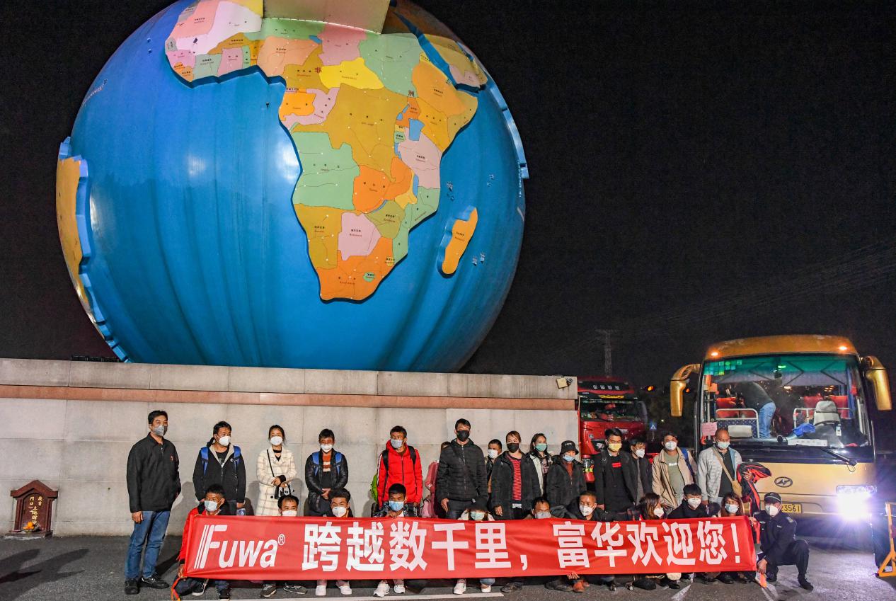 2月25日凌晨兩點時分,一輛載著25名富華員工的大巴車安全抵達(dá)廣東富華機械裝備制造有限公司。員工們背滿行李,身顯疲憊地走下車,雖然已是深夜但大家依舊面帶笑容?!案兄x公司不遠(yuǎn)千里接我們回來,真的非常感謝!”一位戴著帽子皮膚黝黑的員工激動地說到。